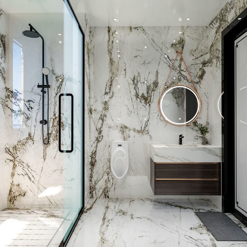 | Wand- und Bodenplatten | Weiß-schwarzer Marmor, der die Gesamtansicht mit einem Hauch Luxus verbessert |