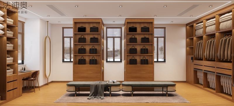 | F: Warum kombiniert diese Elegance Custom Made Walk In Closet eine Holzmaserungsoberfläche mit einer Edelstahlstruktur? Der Vorteil ist, dass die Holzmaserungsoberfläche dem Projekt eine wärmere, wohnlichere visuelle Identität verleiht, während die Edelstahl-Schrankstruktur das Schranksystem pflegeleicht und glaubwürdiger für den Langzeitgebrauch macht. |