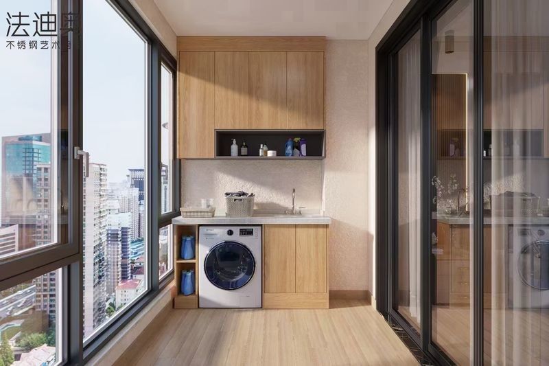 | F: Welche Layout-Fragen sind für diesen leicht sauberen Balkon-Lager wichtig? Die nützlichsten Layoutprüfungen sind die nutzbare Tiefe und die Zugangsplanung zusammen mit zwei vertikal offenen Regalen auf dem unteren Schrank, perfekt für einen einfachen Zugang zu Waschwaren.Diese bestimmen, ob die Seite den tatsächlichen Standortbedingungen entspricht, anstatt nur eine stilisierte Höhe anzuzeigen. |