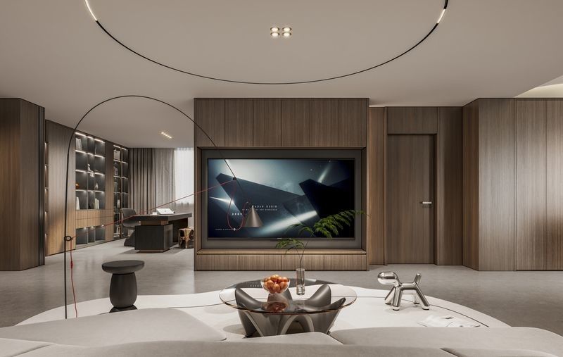| Decken design | Die weiße Decke, ausgestattet mit einem geschwungenen LED-Lichtstreifen, trägt zur modernen Atmosphäre bei und beleuchtet den |