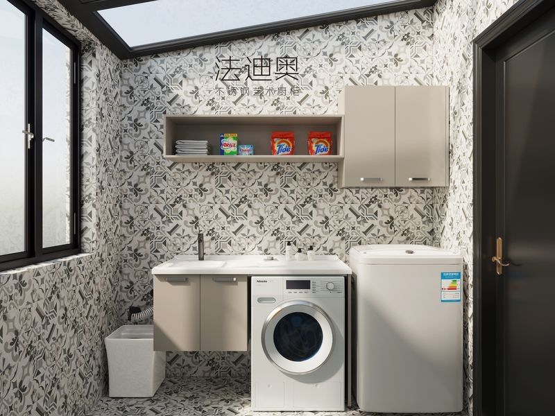 | Waschmaschinenbereich | Konzipiert für eine Frontladenwaschmaschine, die einen funktionalen Raum für Wäschearbeiten bietet. |