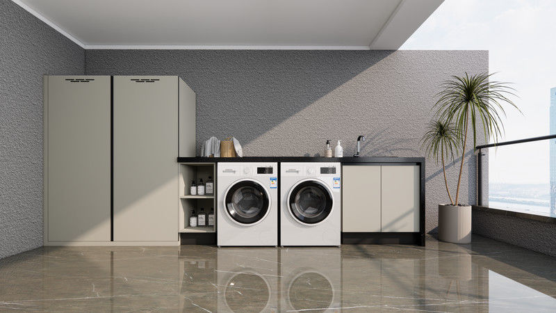 Dieser Waschschrank auf dem Balkon ist für anwendungsorientierte Projekte geeignet, bei denen die Struktur des Edelstahlschranks unter feuchten oder freiliegenden Bedingungen glaubwürdig bleiben muss.Geräumige Schränke und offene Regale für die Lagerung von Waschmitteln, Werkzeuge und andere wesentliche Materialien, die die Instandhaltung der Anlage im Laufe der Zeit erleichtern.