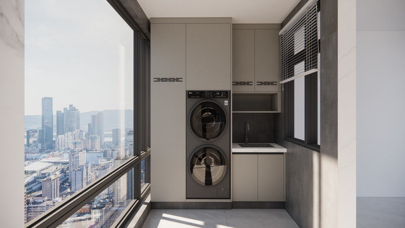 | Eingebettete Funktionen | Konzipiert für Waschmaschinen und Trockner, mit integriertem Raum für eine Spüle. |