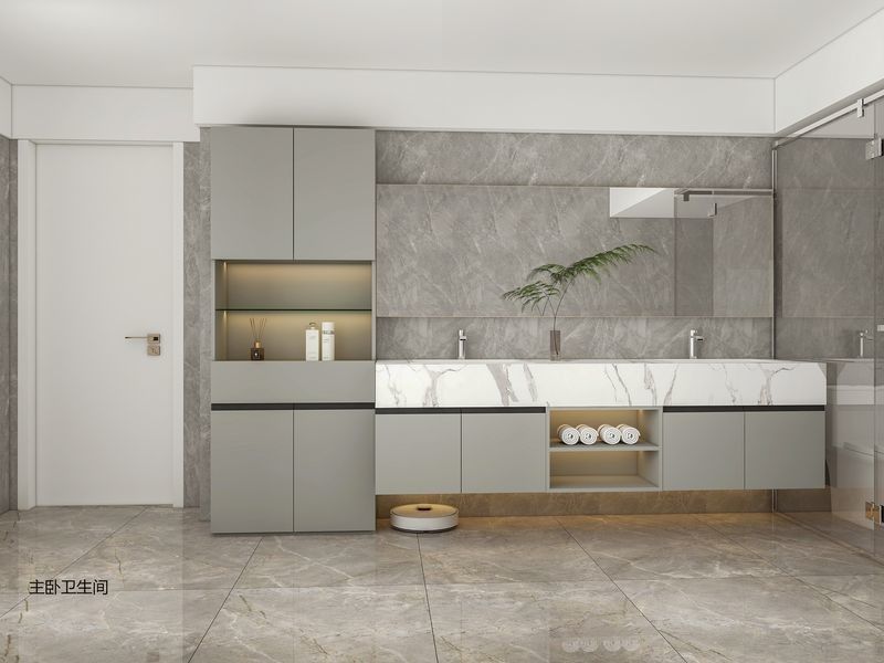 Dieses Bad ist eher ein designorientiertes System als eine generische SKU.Es verwendet Grau zusammen mit Edelstahl Schrankenstruktur, um eine aufgelöste visuelle Identität für Premium-Wohnprojekte zu schaffen.