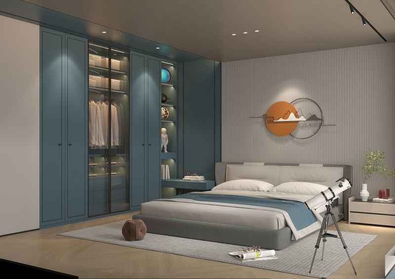 Der Kleiderschrank umfasst sowohl hängende Abschnitte als auch Regale, die ausreichend Platz für Kleidung, Schuhe und Formaldehydfrei sind Teil der gleichen Zusammensetzung,Das hilft Designern und Entwicklern zu beurteilen, wie das System lesen wird, wenn Geräte, Arbeitsplatten und Beleuchtung sind vorhanden.