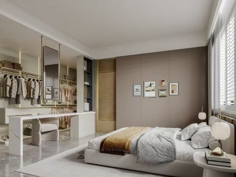 Sie kombiniert auch Walk-in-Stauraum-Zonierung mit Formaldehydfreiheit, was Käufern hilft zu beurteilen, ob die Oberflächengestaltung, die Geräteintegration und die tägliche Nutzungsplanung in einem System aufeinander abgestimmt bleiben können.