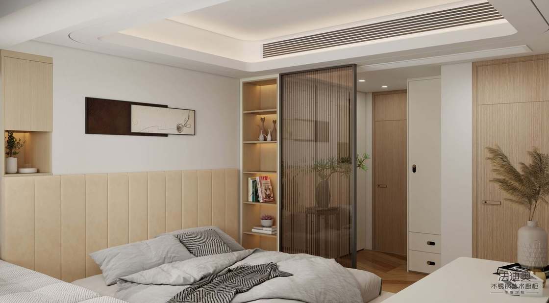 Dieser Schrank wird eher als ein designorientiertes System als als eine generische SKU dargestellt.Es verwendet Beige / Grau zusammen mit Edelstahl Schrankenstruktur, um eine aufgelöste visuelle Identität für Premium-Wohnprojekte zu schaffen.