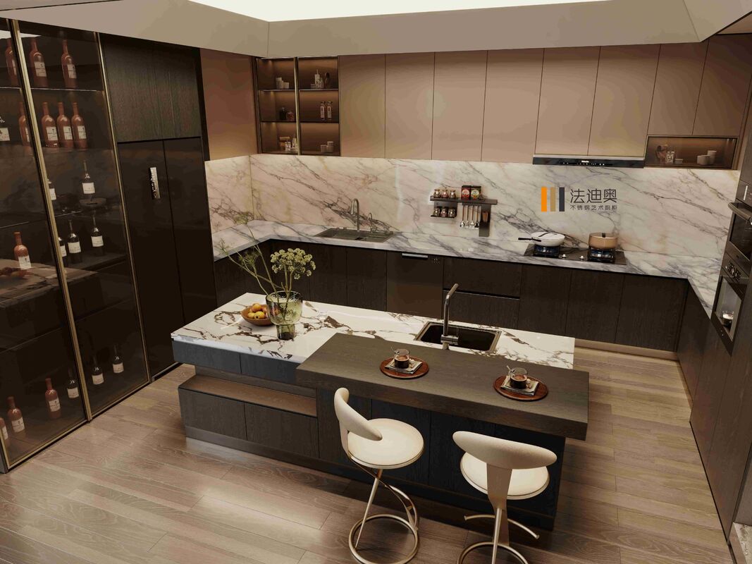 | F: Unterstützt diese integrierte Weinlager Luxury Modern Stainless Steel Küche integrierte Geräte oder Display-Funktionen? Die aktuelle Seite verweist bereits auf Appliance-Integration und organisierte Speicher-/Display-Planung, die den Beschaffungsteams hilft zu beurteilen, ob die Designsprache über hohe Einheiten hinweg übertragen werden kann,Inseln, und Feature-Zonen. |