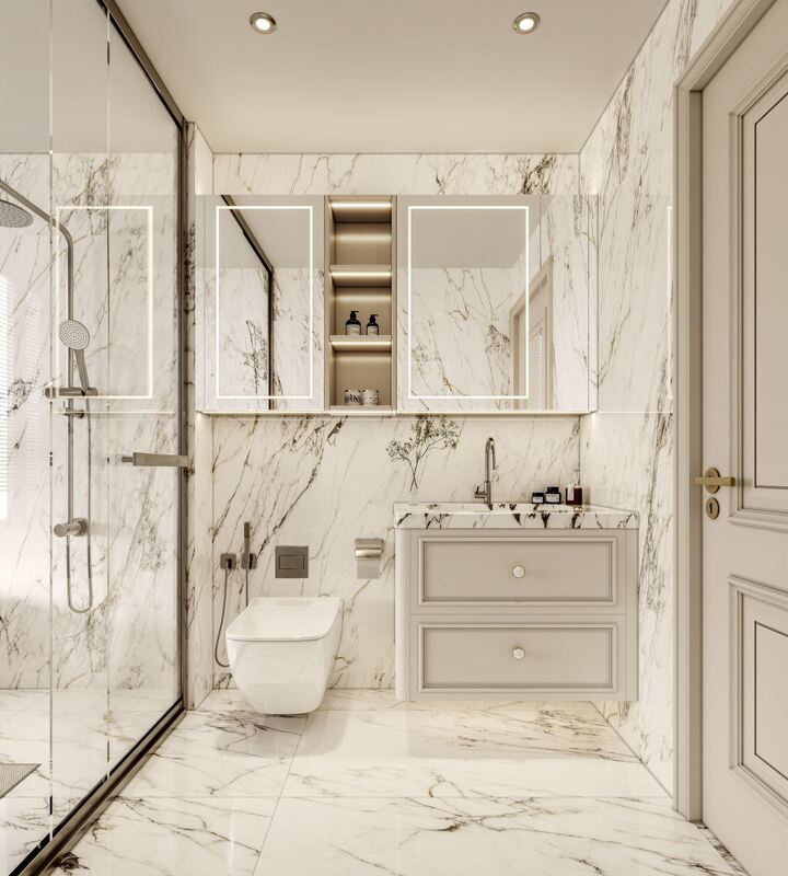 Das Layout und die Wasserdichtigkeit sind Teil derselben Komposition, was Designern und Entwicklern hilft zu beurteilen, wie das System aussehen wird, sobald Geräte, Arbeitsplatten und Beleuchtung angebracht sind.