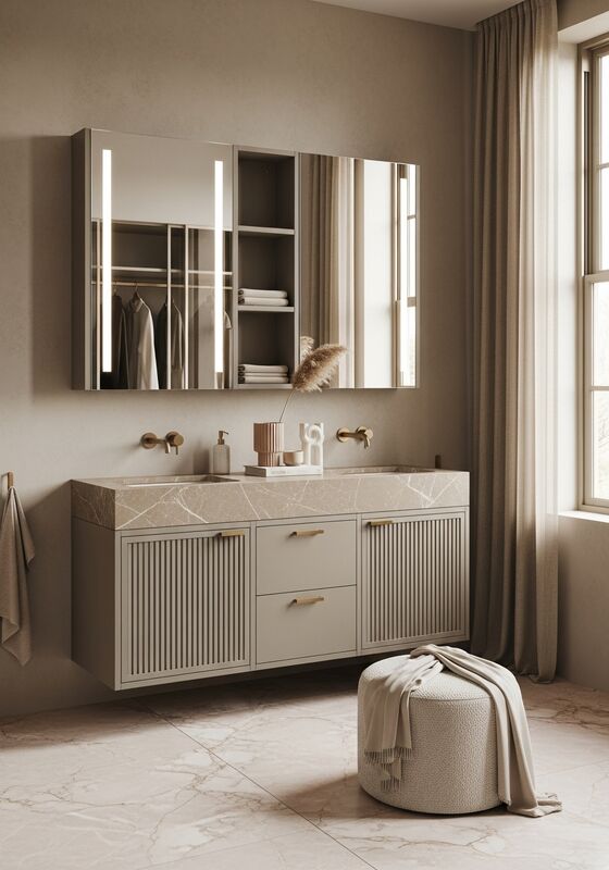Mehr entdecken Verwandte SystemeSehen Sie, wie das Soft Taupe Fluted Vanity Cabinet aus 304 Edelstahl mit benachbarten Fadior-Systemen für eine vollständigere Badezimmer-Waschtischschrank- oder Ganzhausspezifikation verbunden ist. Der erste Link dient als Kategorie-Gateway; die verbleibenden Links sind angrenzende Systeme.