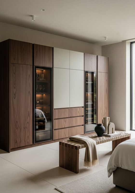 | Design-HighlightsWärmer Minimalismus mit gastfreundlicher DNA, das visuelle Gewicht von Walnuss, die technische Präzision von Stahl und Glas, überall glänzungsfreie Oberflächen.Die Proportionen begünstigen die horizontale Verlängerung gegenüber der vertikalen Monumentalität, was auf eine eingebaute architektonische Integration statt auf ein eigenständiges Gerät hindeutet.Während Kaschmirlackplatten rhythmische visuelle Erleichterung bieten. Richtung mit dunklem Walnussbraun (warm mitteldunkel mit subtilem rotem Unterton) als Hauptoberfläche; Kaschmirtaupe (warm neutral zwischen Sand und Pilz) für Akzentmodule;mit einer Breite von nicht mehr als 30 mm; warmes Greige (Gipsfarben, leicht rosa-warm) als sekundäres Neutralitätsbild für Innenoberflächen, disziplinierte Proportionen,und ein Doppelzonen-Wärmeregulierungssystem mit 304 Edelstahl-Innenkammer für eine stabile Luftfeuchtigkeit und Temperaturregelung. Die Seite sollte als aufgelöste Spezifikation gelesen werden, nicht als allgemeine Speicherbox. |
