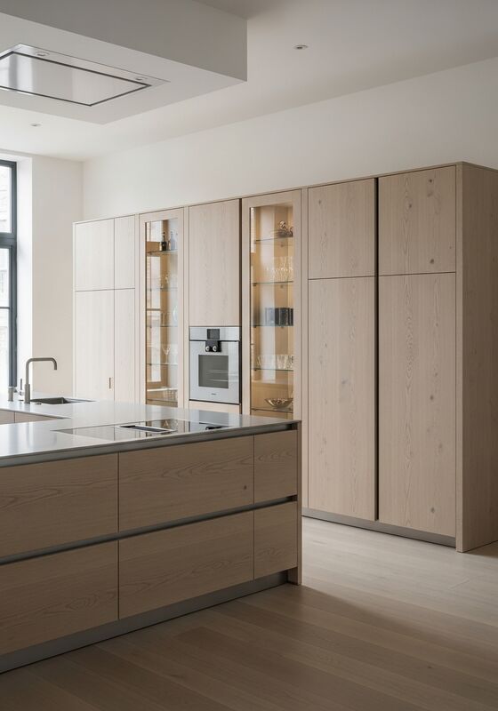 | Verwendung | Hochwertige Wohnküchen in Architektenhäusern, Sammlerresidenzen, Galerienähe und Projekte, die ruhige, lichtmaximierende Schränke erfordern |